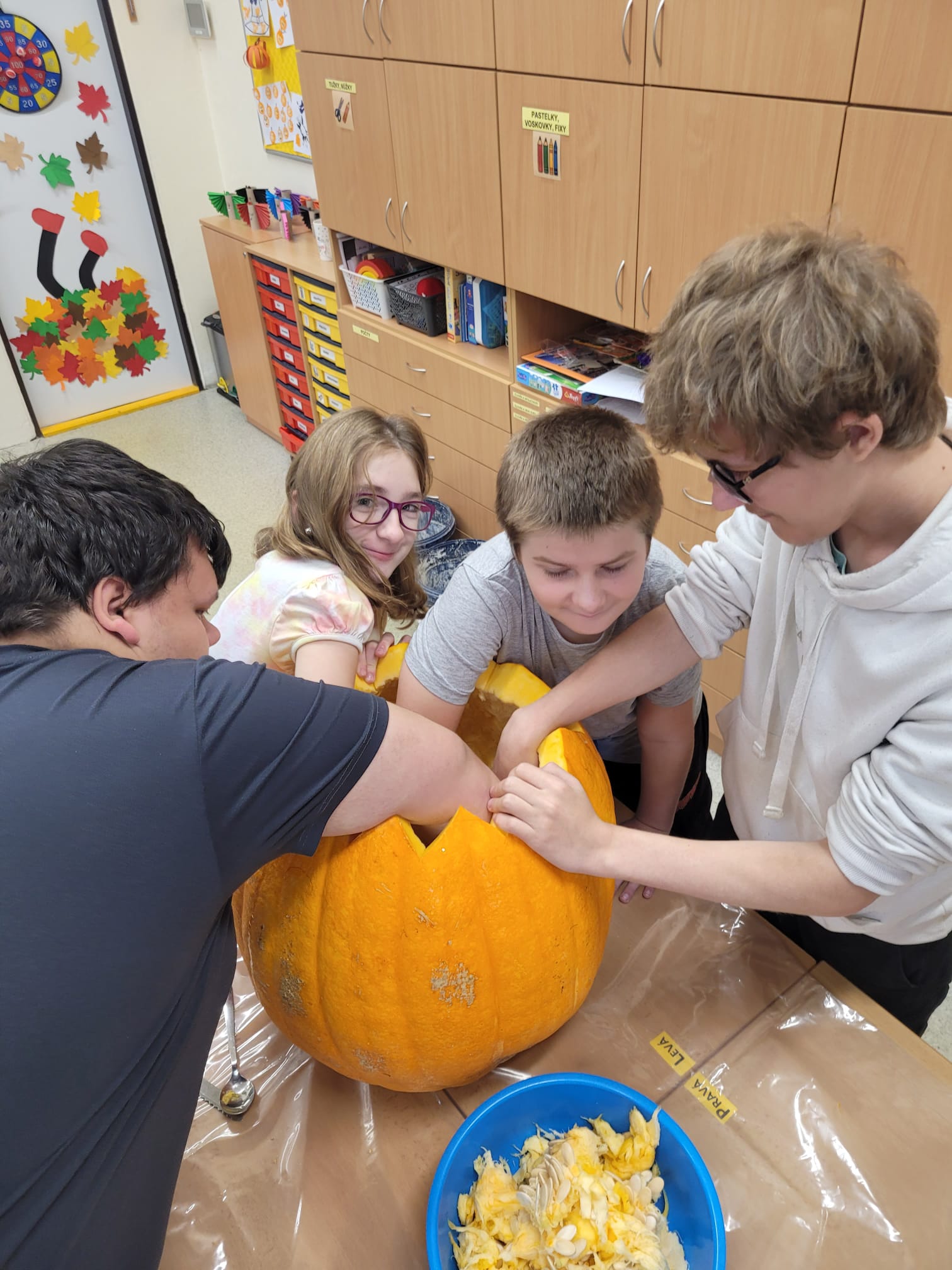 Listí šustí pod nohama, dýně se mění v usměvavé (někdy však až děsivé) lucerny a škola voní po lineckém cukroví. Opět po roce jsme si užili podzimní tvoření, kdy kromě již zmíněných dýní jsme vytvářeli voňavá mýdla, tvořili lampionky, kde děti pustily uzdu své fanzatii, odlévali svíčky a vyráběli svícínky z keramiky. Opět bylo veselo, děti byly skvěle naladěné a díky nim i my paní učitelky.