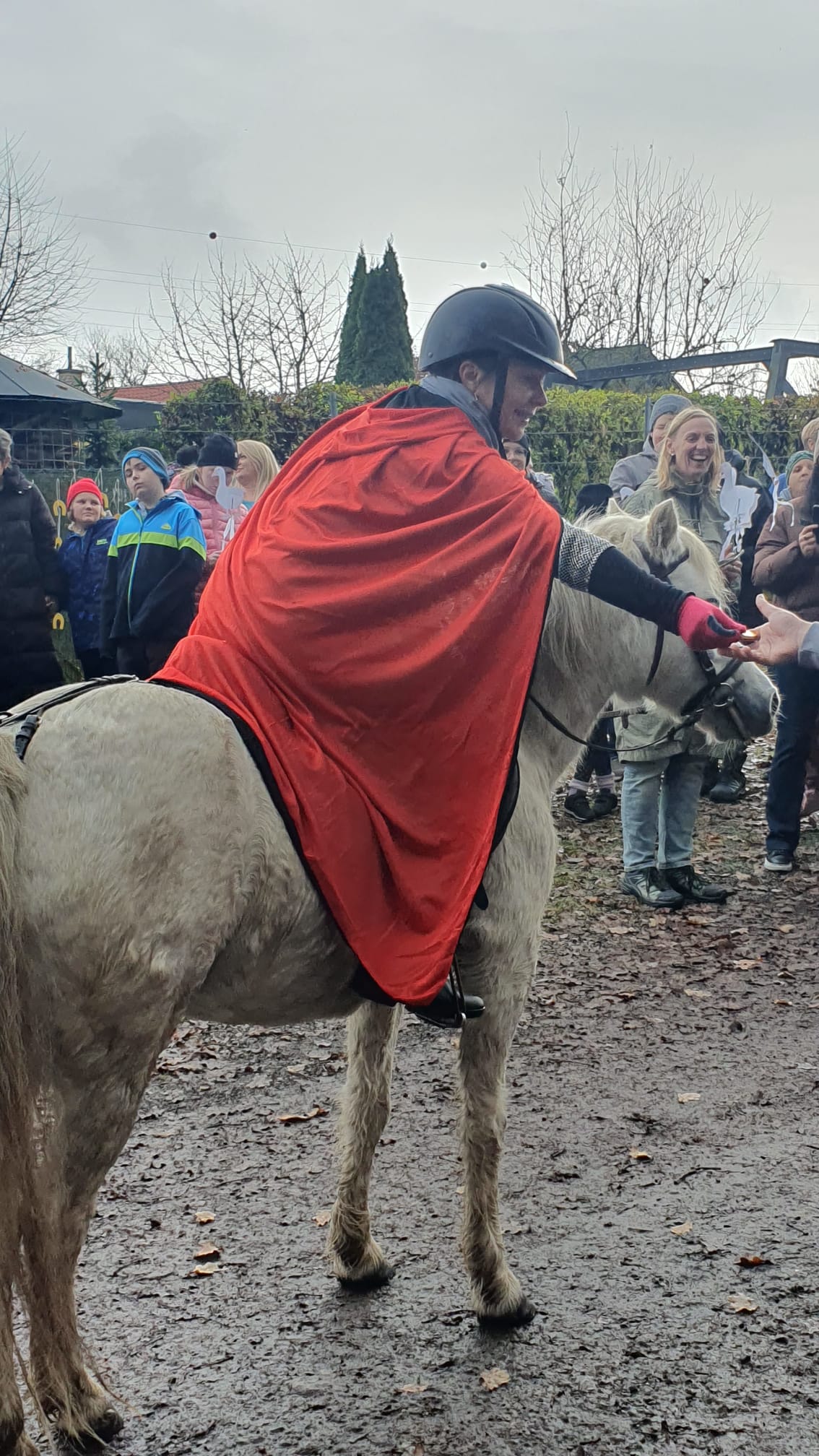 Přesně takhle děti uvítaly svatého Martina, který přijel na bílém koni. Bohužel s ním nepřijel sníh, ale to nám vůbec nevadilo! Umíme si poradít a sníh jsme se na chvíli vykouzlili :-)
