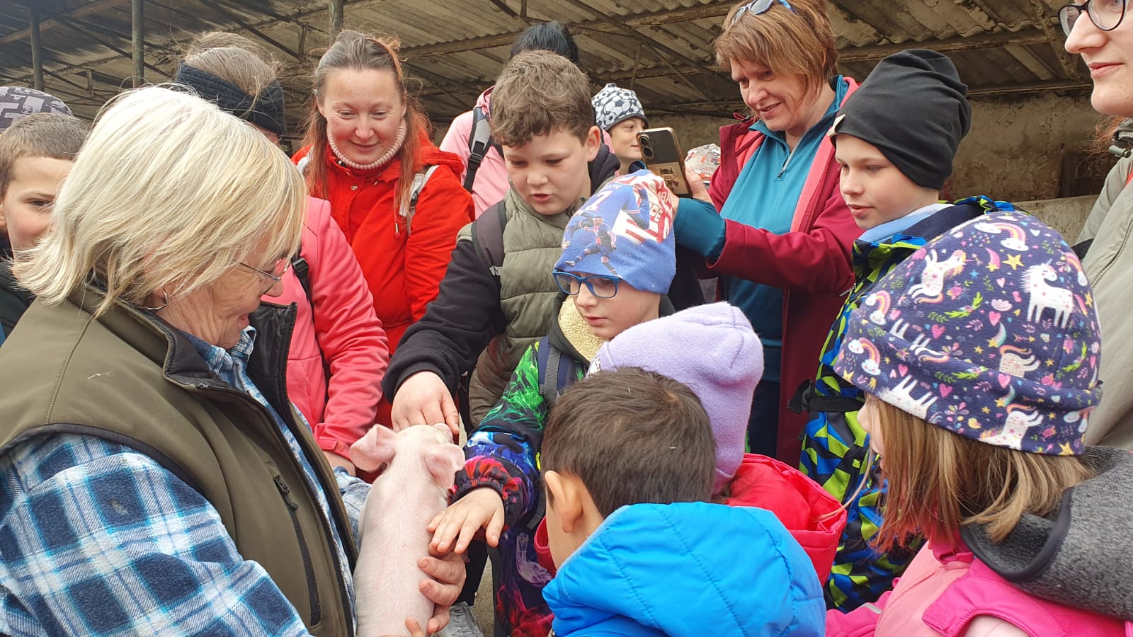 Během prohlídky jsme měli možnost vidět krávy zblízka a dozvěděli jsme se o nich spoustu nových informací. Velmi zajímavá byla také část věnovaná telátkům. Viděli jsme telátka jednodenní, desetidenní i dvouměsíční. Každé bylo v jiné fázi vývoje a bylo zajímavé pozorovat, jak rychle rostou a mění se. Také jsme viděli kravičku - nastávající maminku, která se měla otelit buď dnes nebo zítra. Kromě telátek jsme viděli také selátko, které bylo neskutečně roztomilé. Nemohli jsme se ho nabažit, pořád jsme ho hladili.