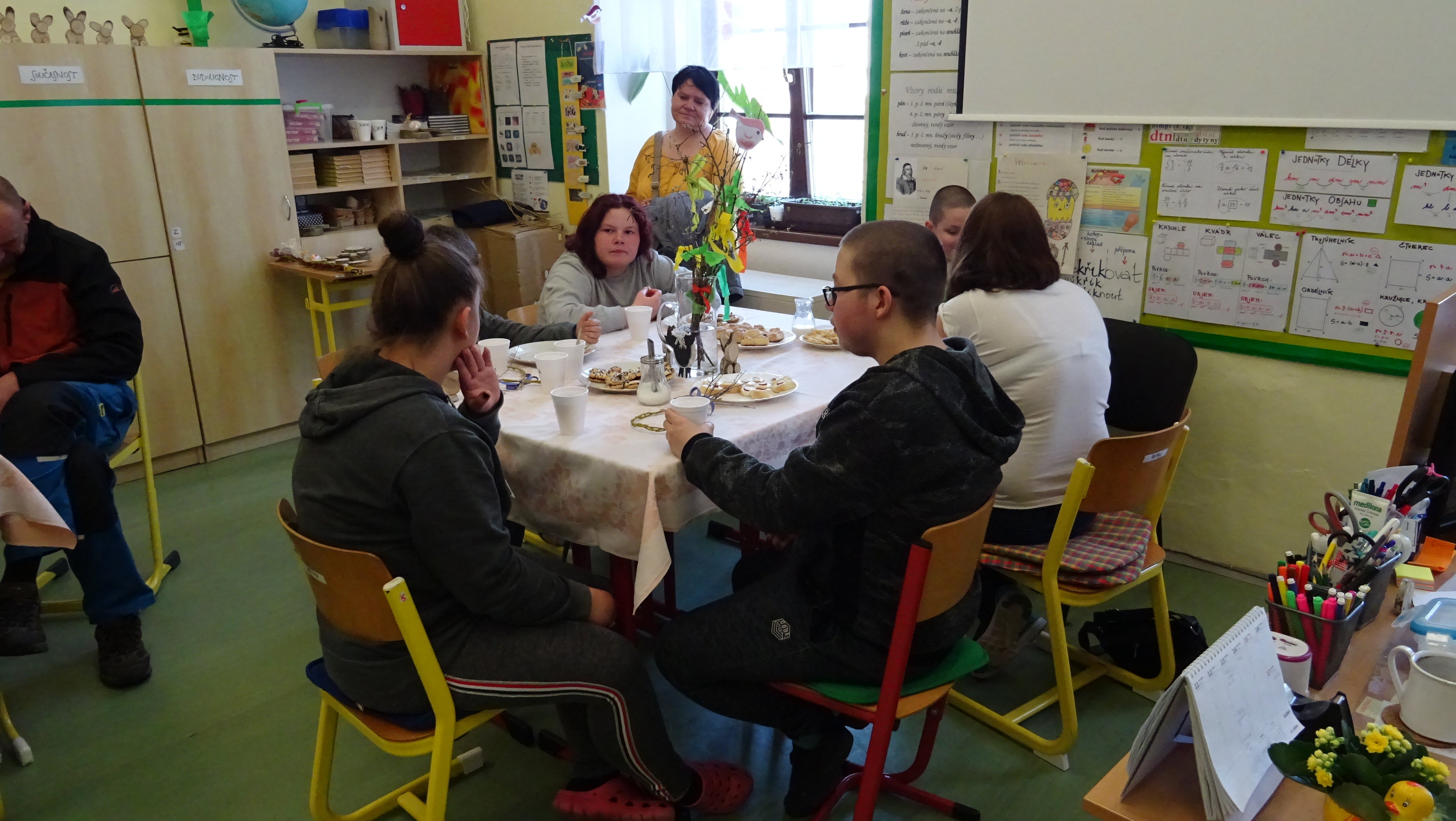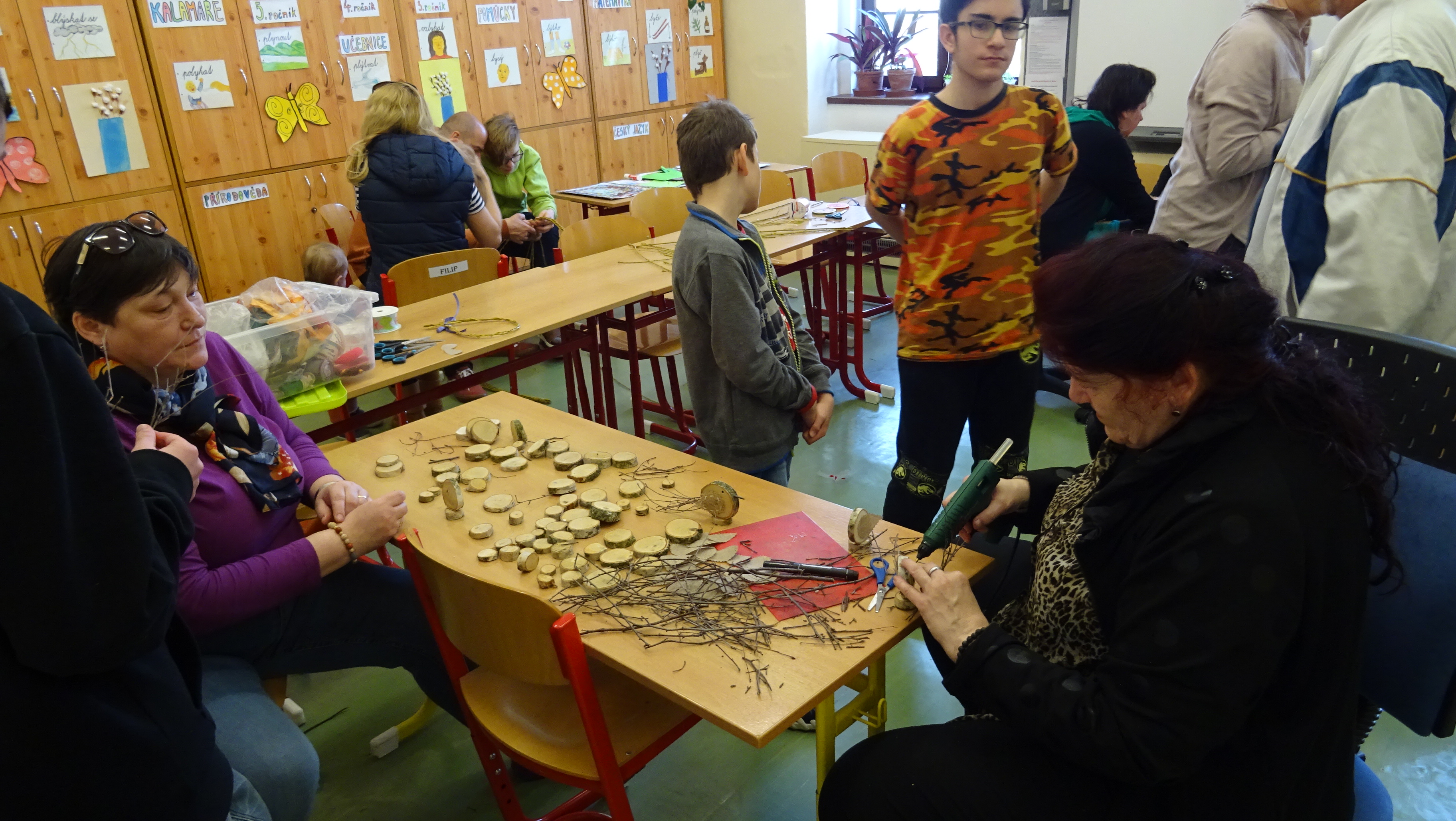 Poslední den před velikonočními prázdninami jsme pozvali naše rodiče ke společnému tvoření. Pletli jsme pomlázky, zdobili jsme ptáčky ze dřeva a zajíčky ze dřeva jsme vyráběli. Také jsme si mohli ozdobit ubrouskovou technikou uvařená vajíčka. Po velké práci jsme se občerstvili v kavárně, kde na nás čekalo výborné pohoštění. Byl to krásný začátek prázdnin!