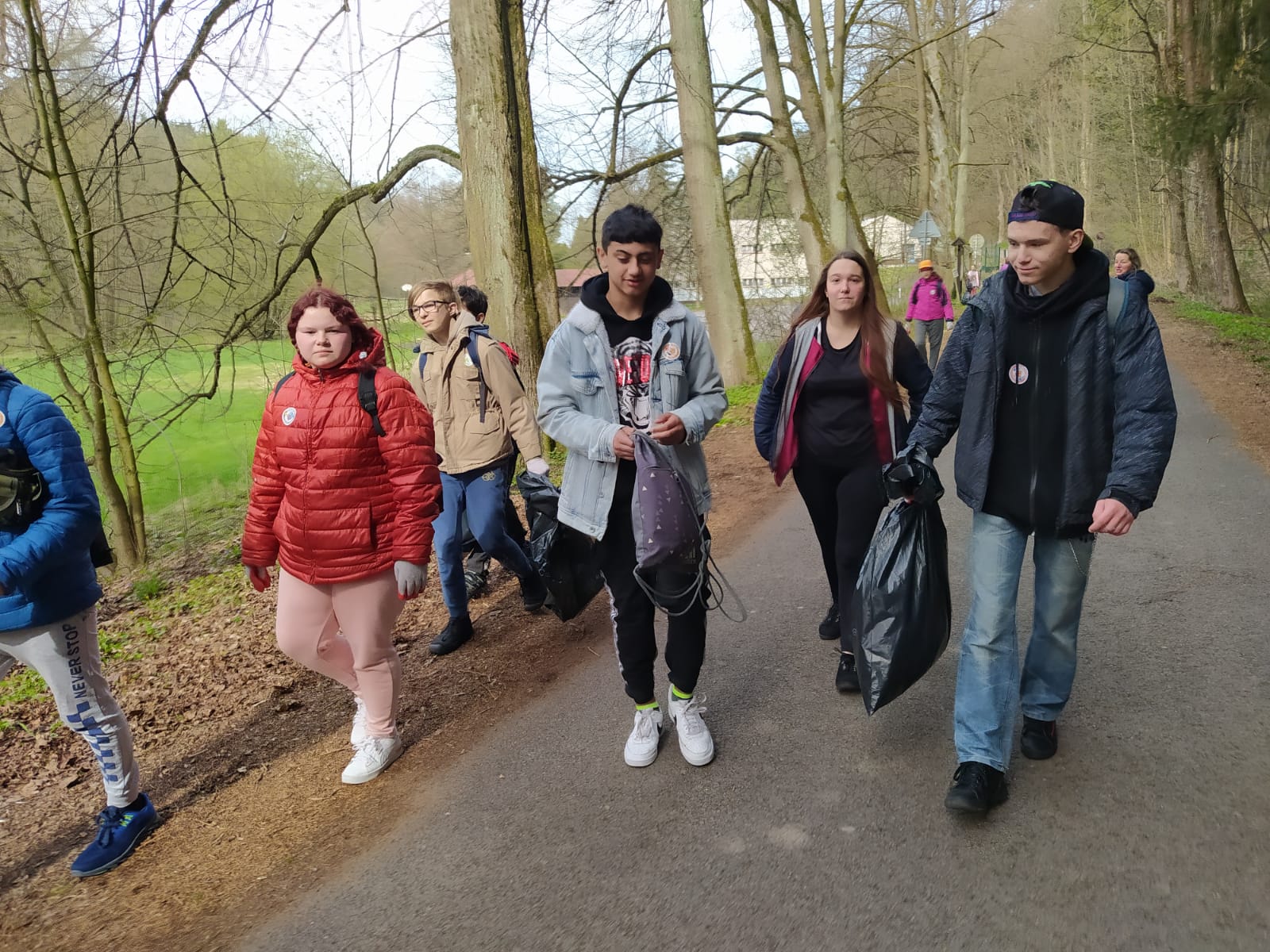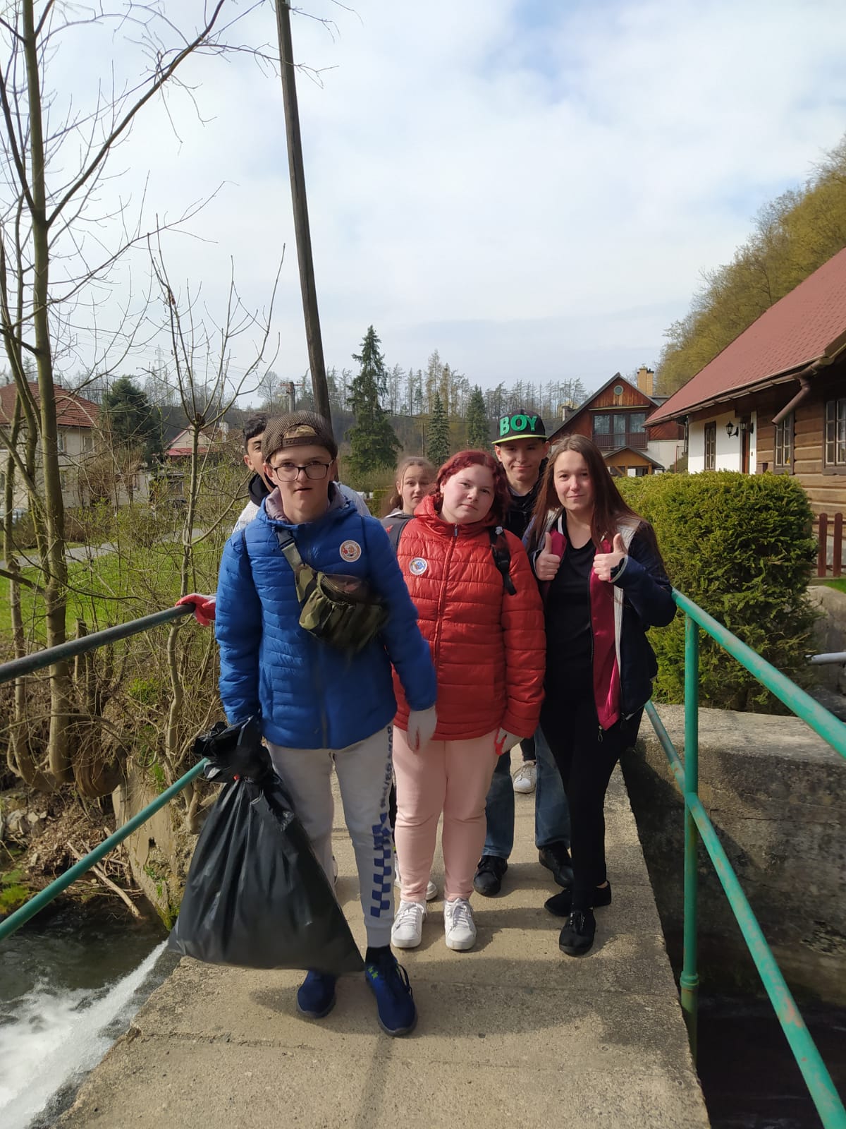 V pátek na Den Země jsme místo učení vyrazili na úklid do lesa Včelného.