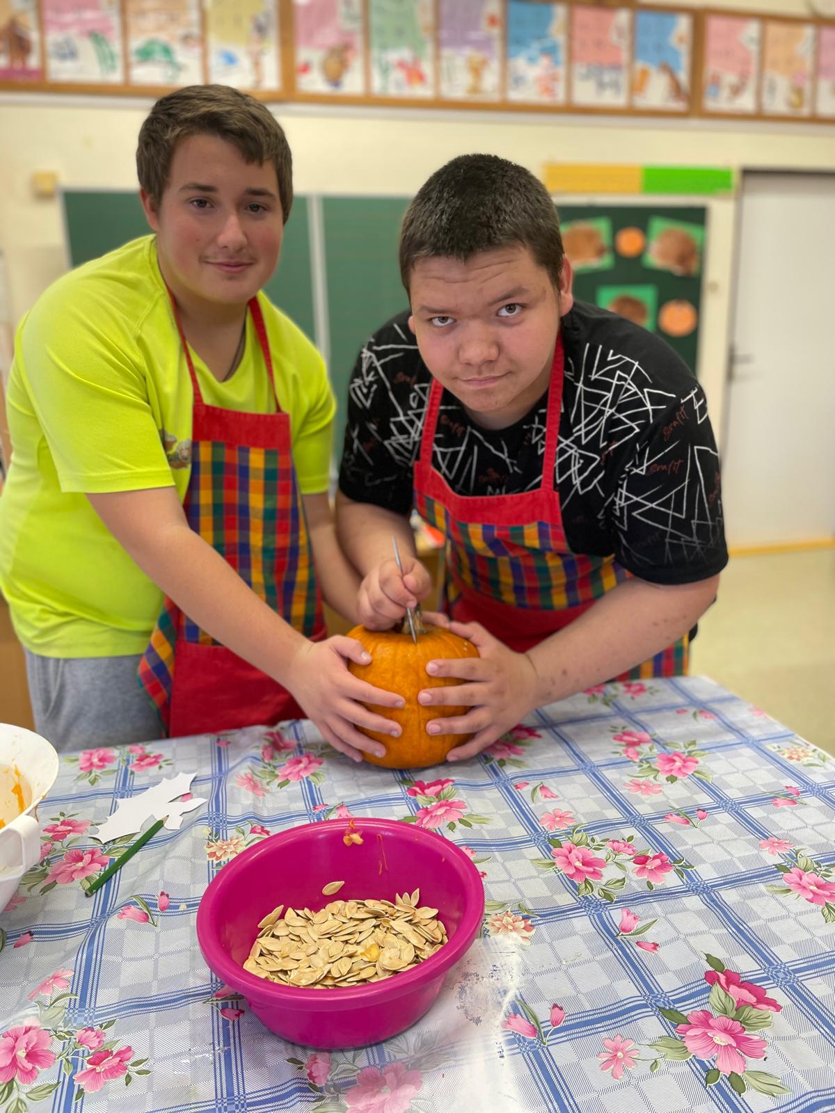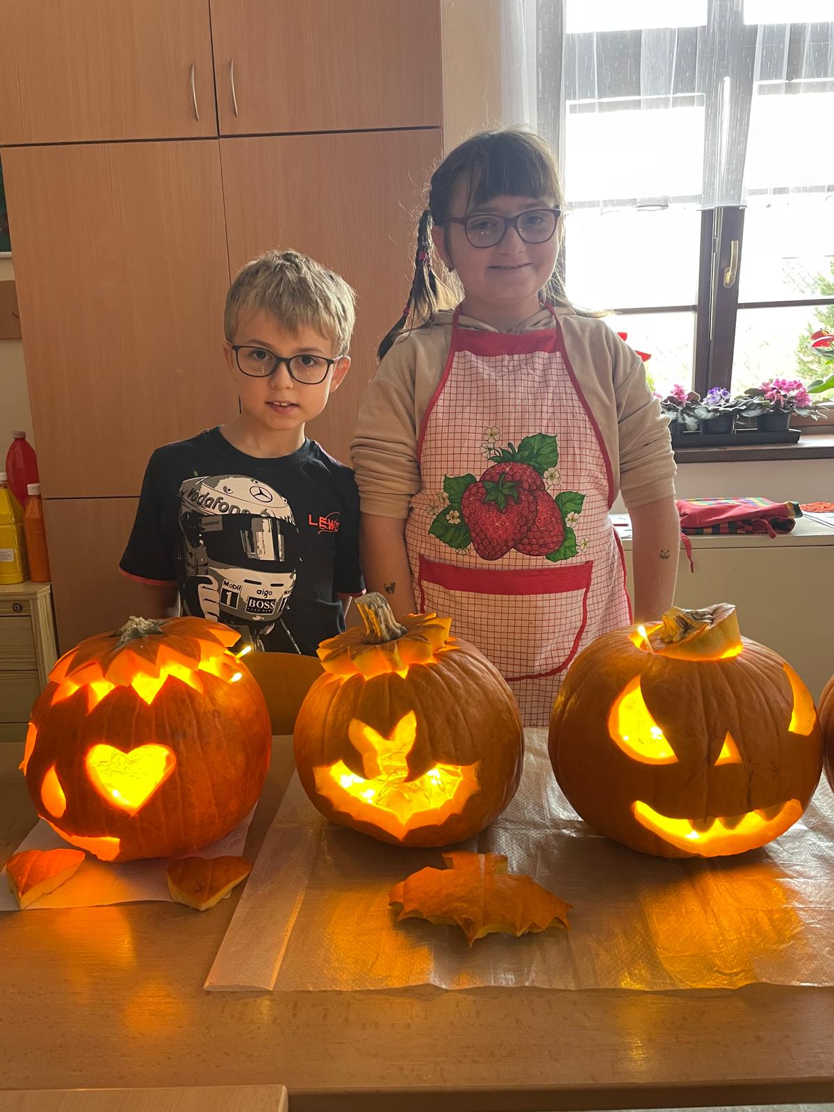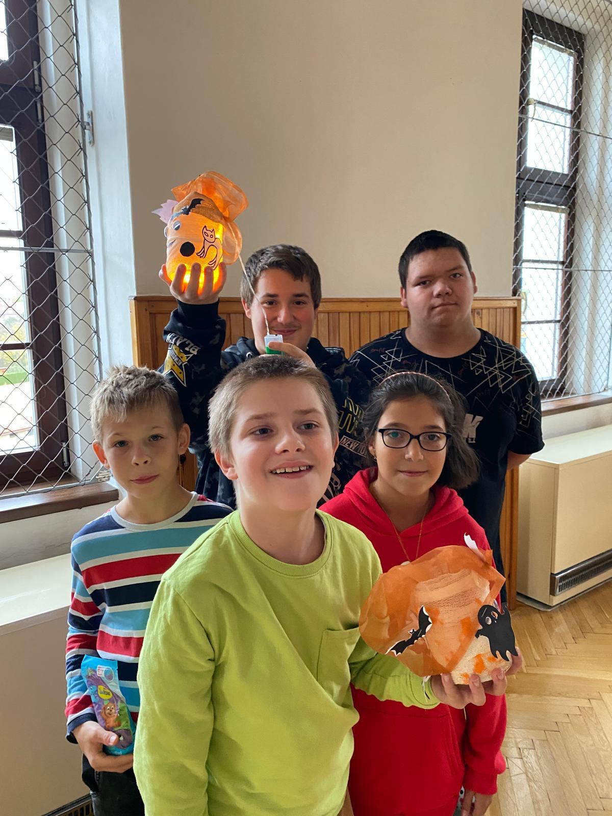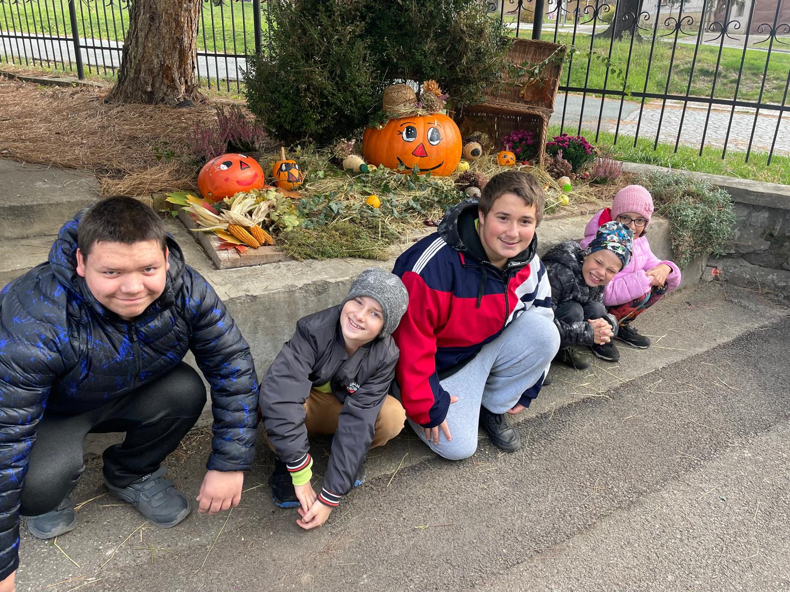 aneb halloweenská výstava lampiček, voňaví duchové, na které se sbíhají sliny, podzimní zátiší před školou.....A vydlabané dýně, bez nich by to nešlo!