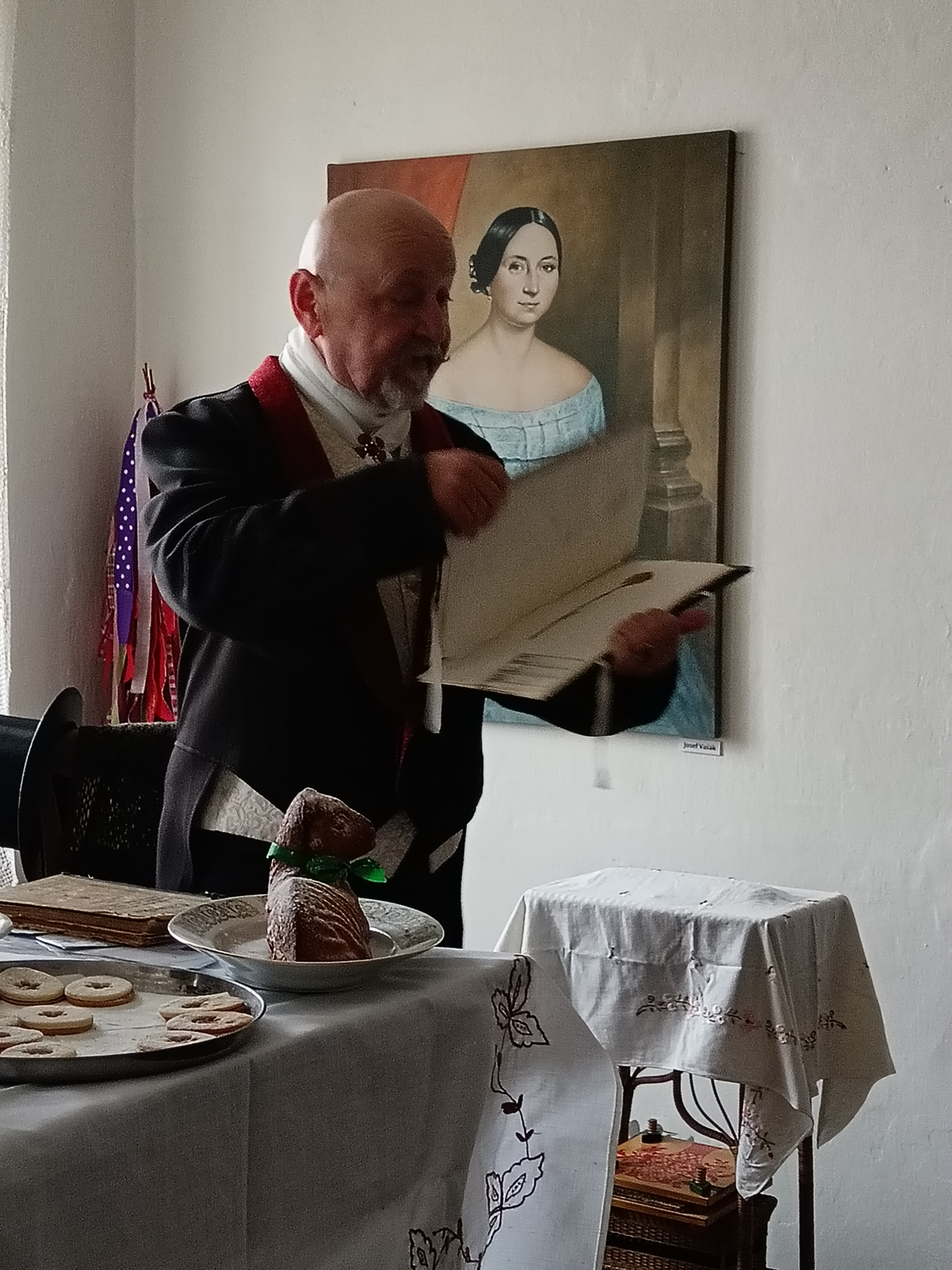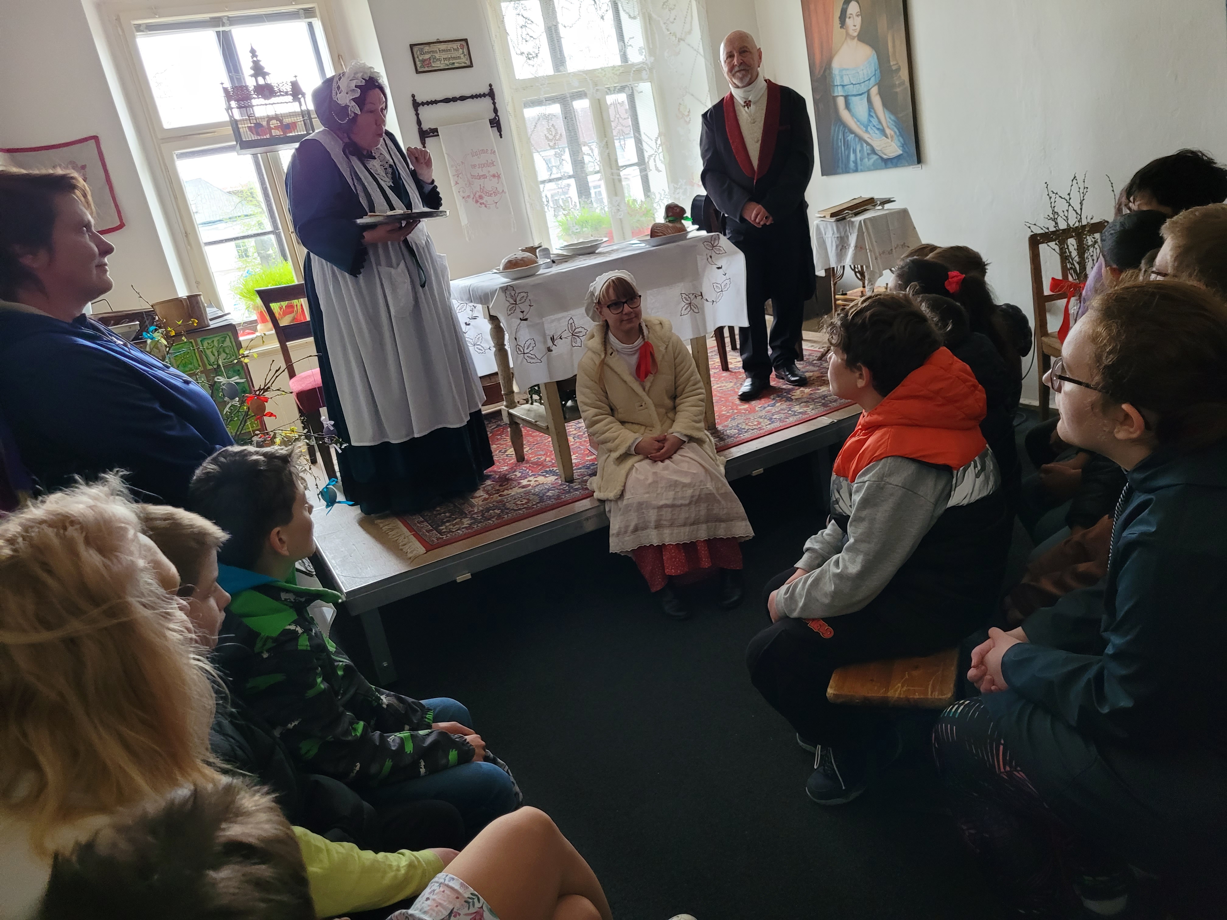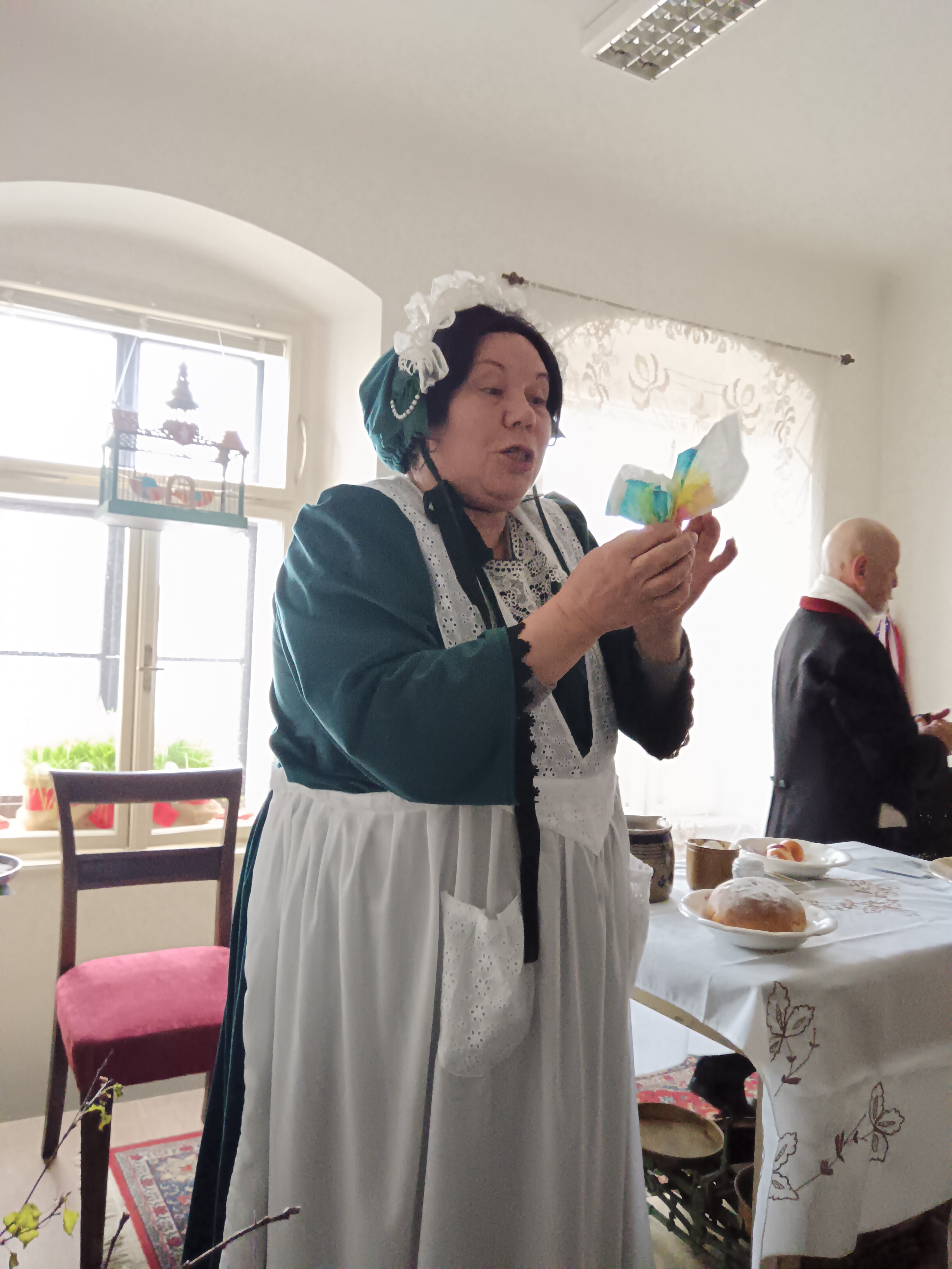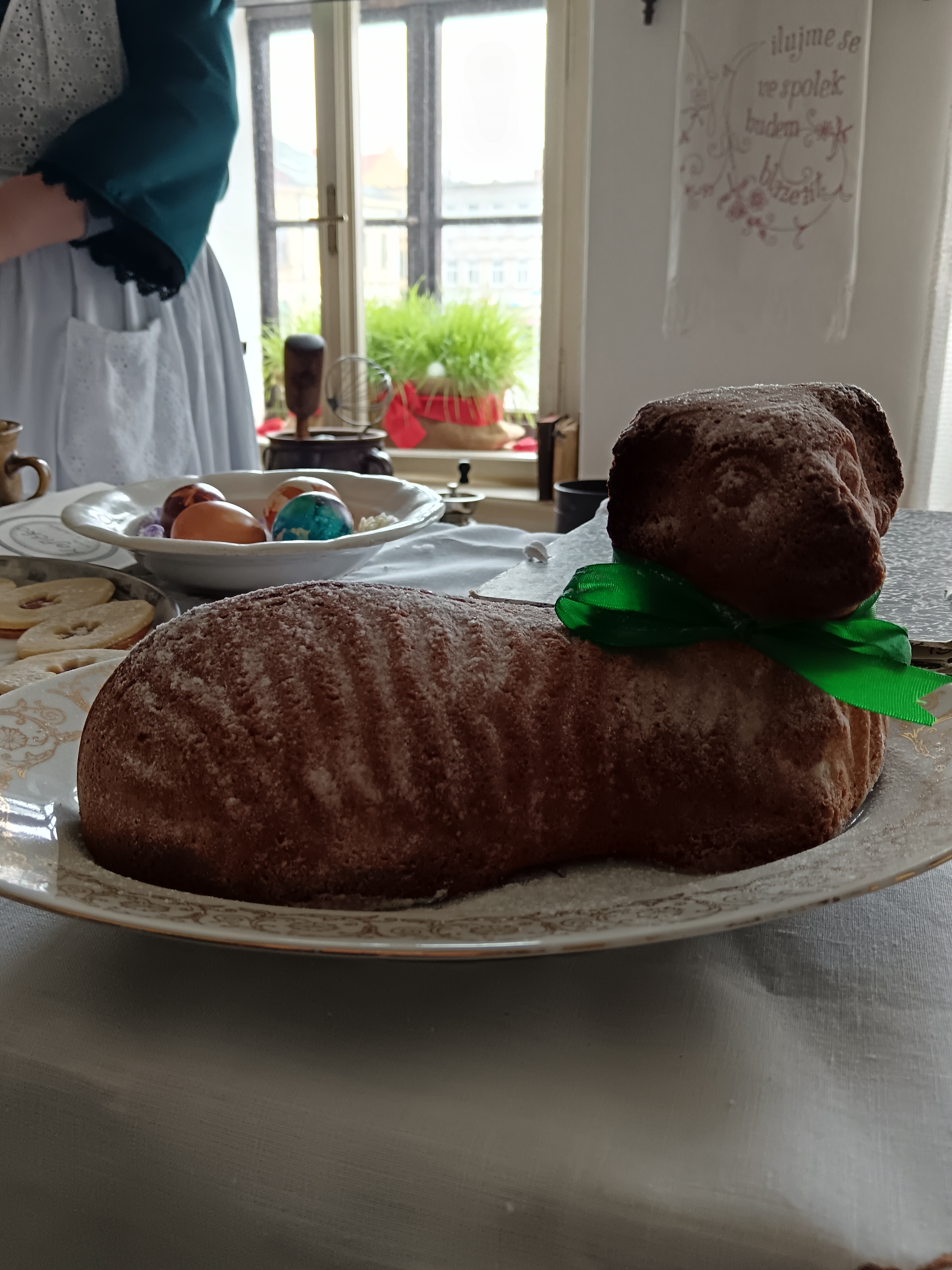 Po nějakké době jsme opět zavítali do bytu manželů Rettigových. Tentokrát nás pozvali na svátky Velikonoc. Paní Magdalena, srdečná jako vždy, nám vyprávěla, jak slavili Velikonoce za jejího dětství. Dala nám ochutnat voňavé linecké vajíčko s marmeládou. To bylo něco! A pan Retttig? Holky před ním utíkaly a schovávaly se, ale co jim to bylo platné! Panu Rettigovi neujde nic a stejně děvčata vyšlehal! Alespoň budou mladé a krásné!