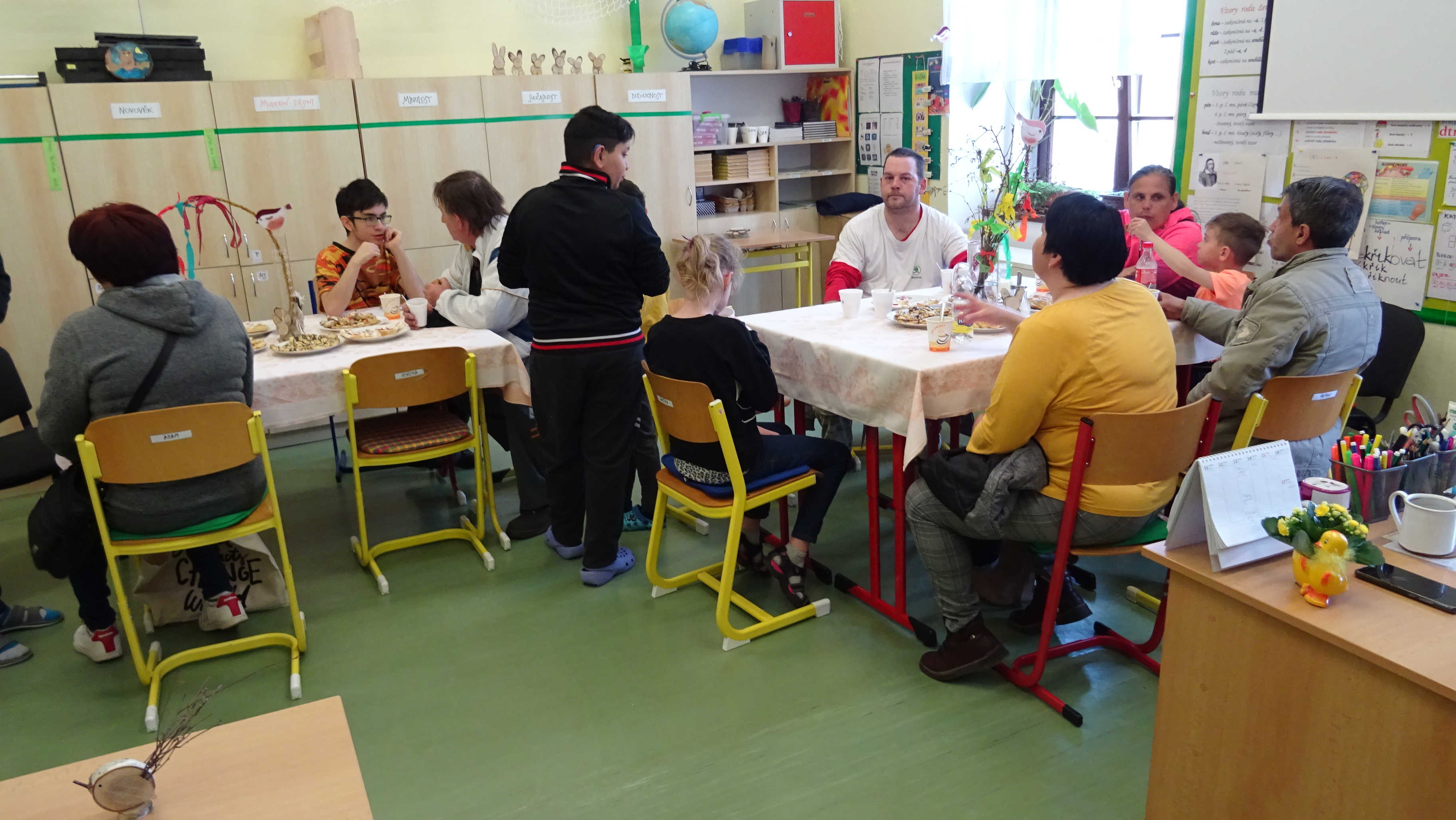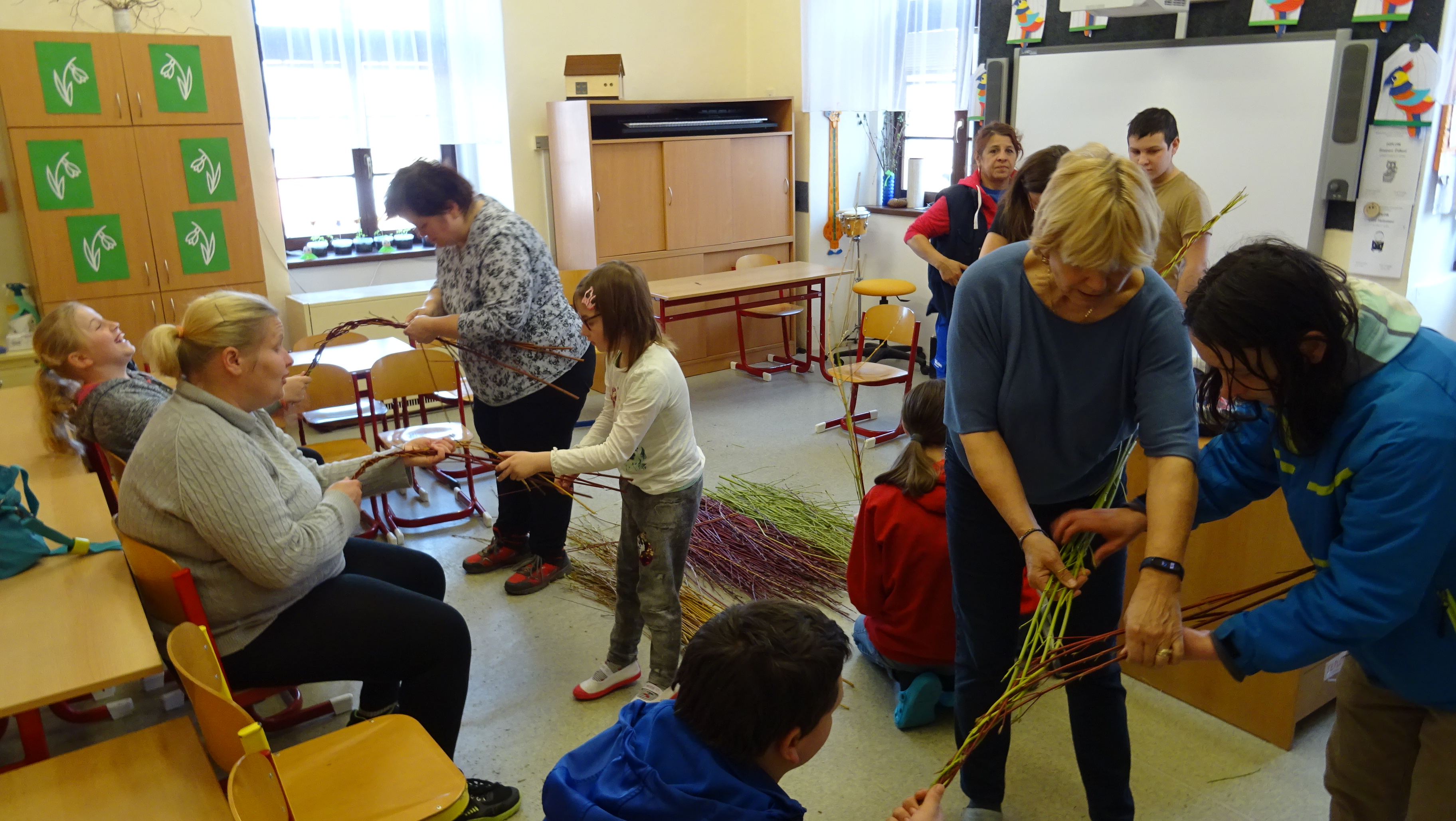 Poslední den před velikonočními prázdninami jsme pozvali naše rodiče ke společnému tvoření. Pletli jsme pomlázky, zdobili jsme ptáčky ze dřeva a zajíčky ze dřeva jsme vyráběli. Také jsme si mohli ozdobit ubrouskovou technikou uvařená vajíčka. Po velké práci jsme se občerstvili v kavárně, kde na nás čekalo výborné pohoštění. Byl to krásný začátek prázdnin!