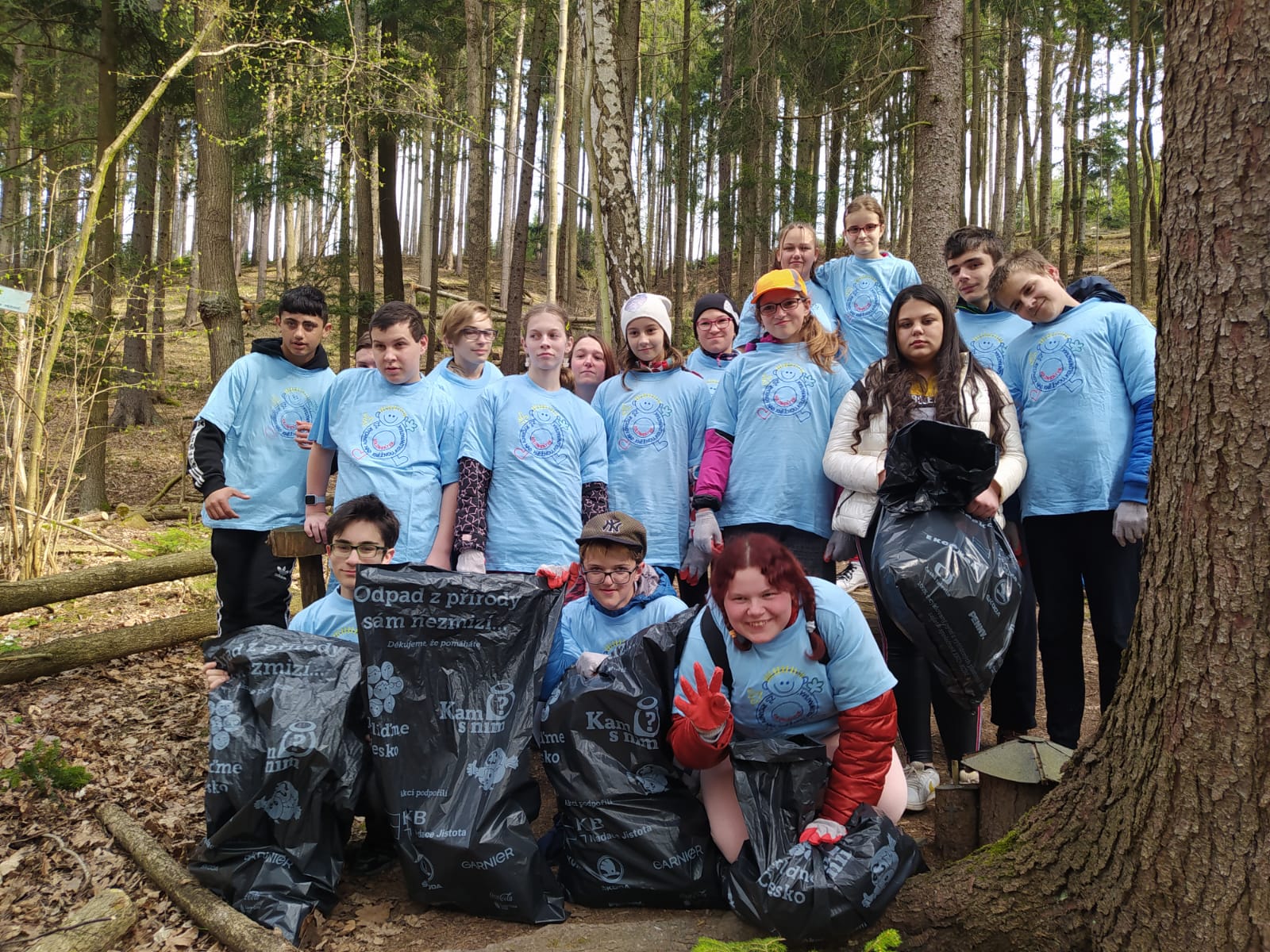 V pátek na Den Země jsme místo učení vyrazili na úklid do lesa Včelného.