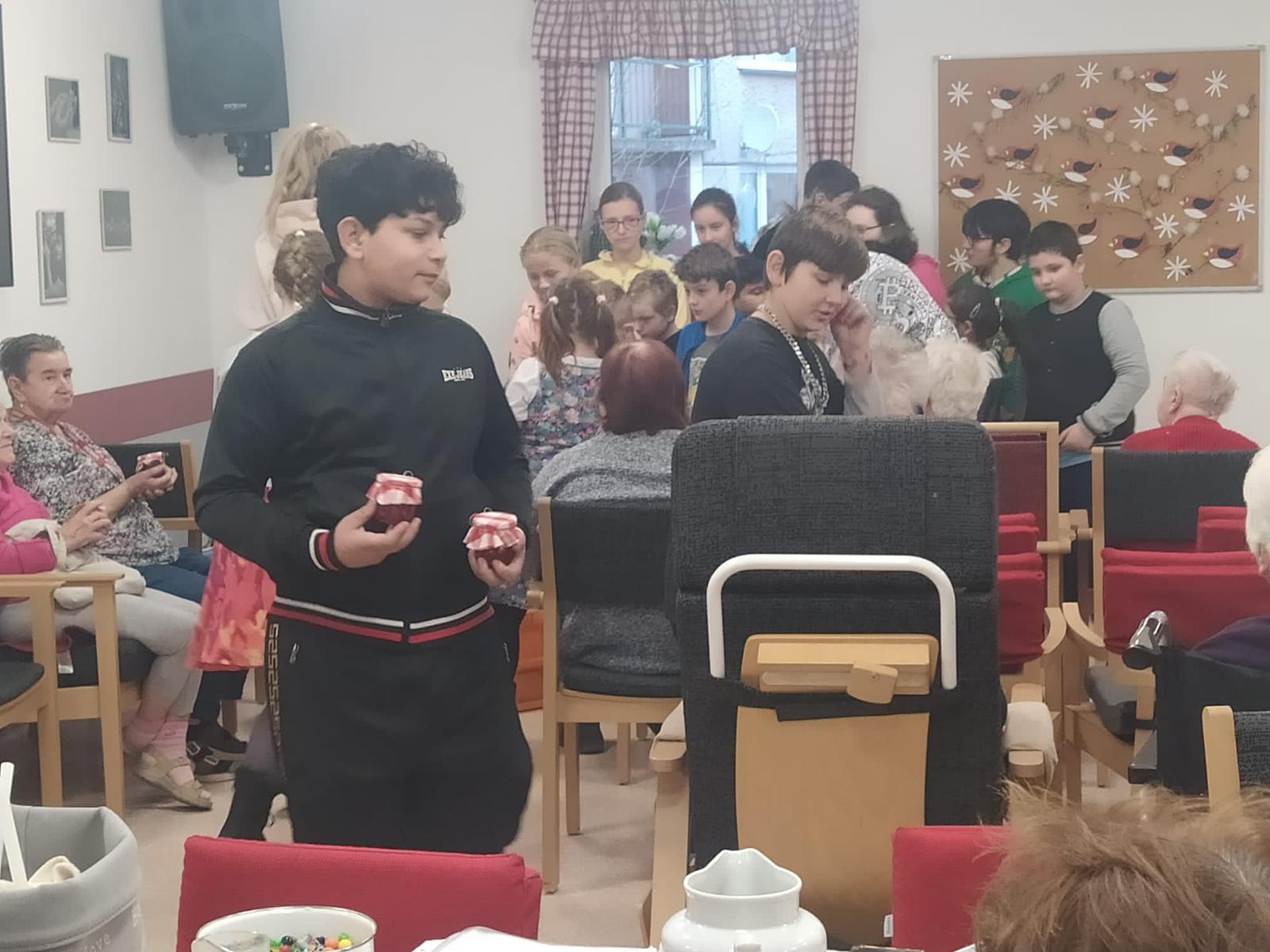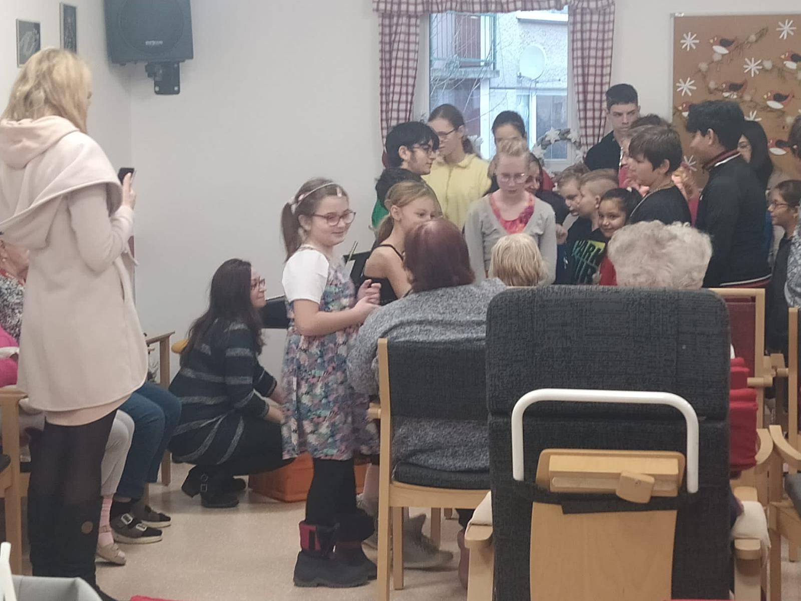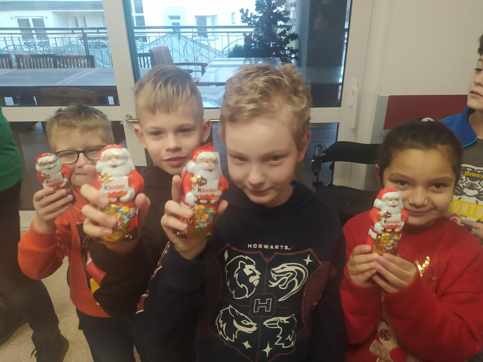 Před Vánoci se mají dělat dobré skutky a jeden takový jsme dnes udělali. Šli jsme zazpívat vánoční písničky a koledy babičkám a dědečkům z Domovinky. Po počátečním ostychu děti krásně zazpívaly, některým babičkám až slzy tekly. Po našem malém koncertě jsme všem předali drobný vánoční dárek - pečený čaj. K našemu překvapení jsme dostali sladkou odměnu, moc děkujeme za milé překvapení!