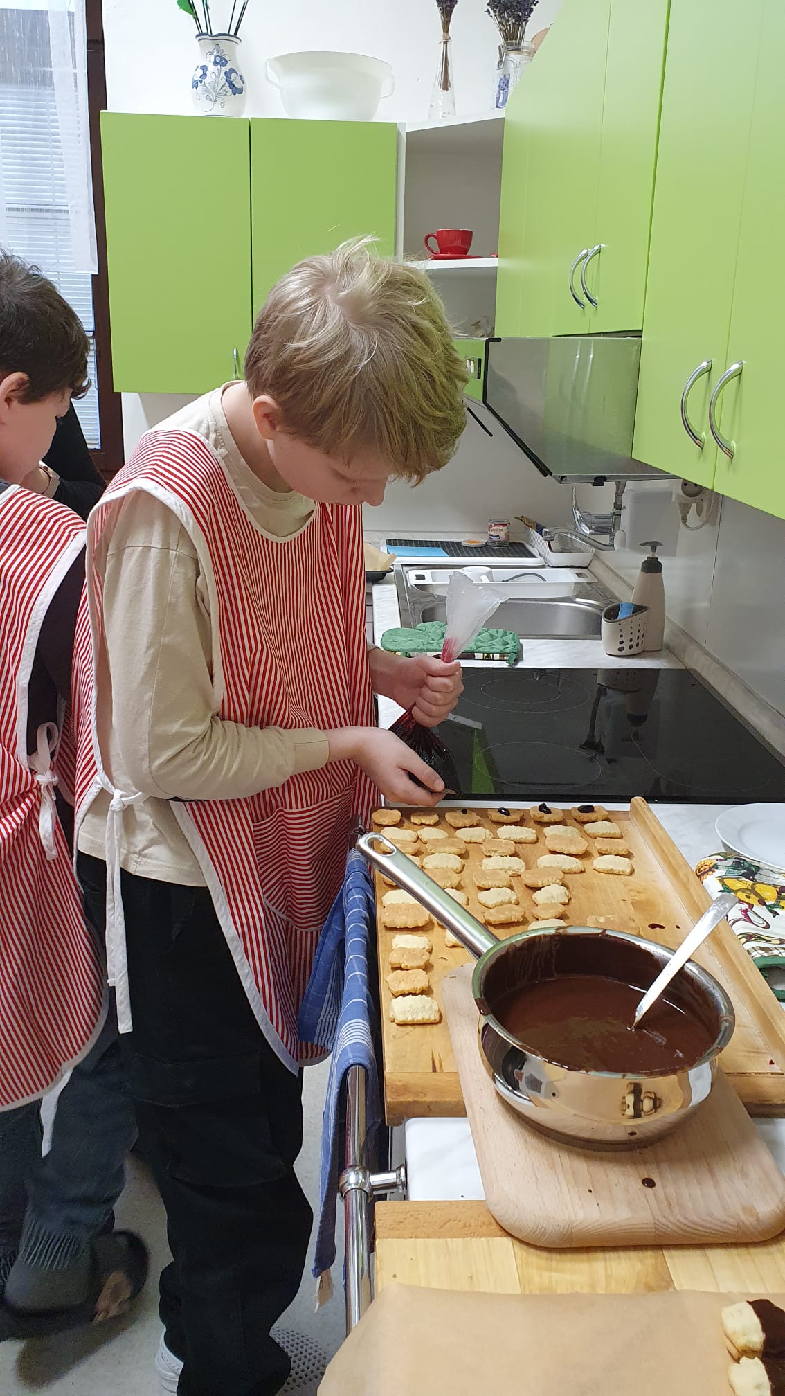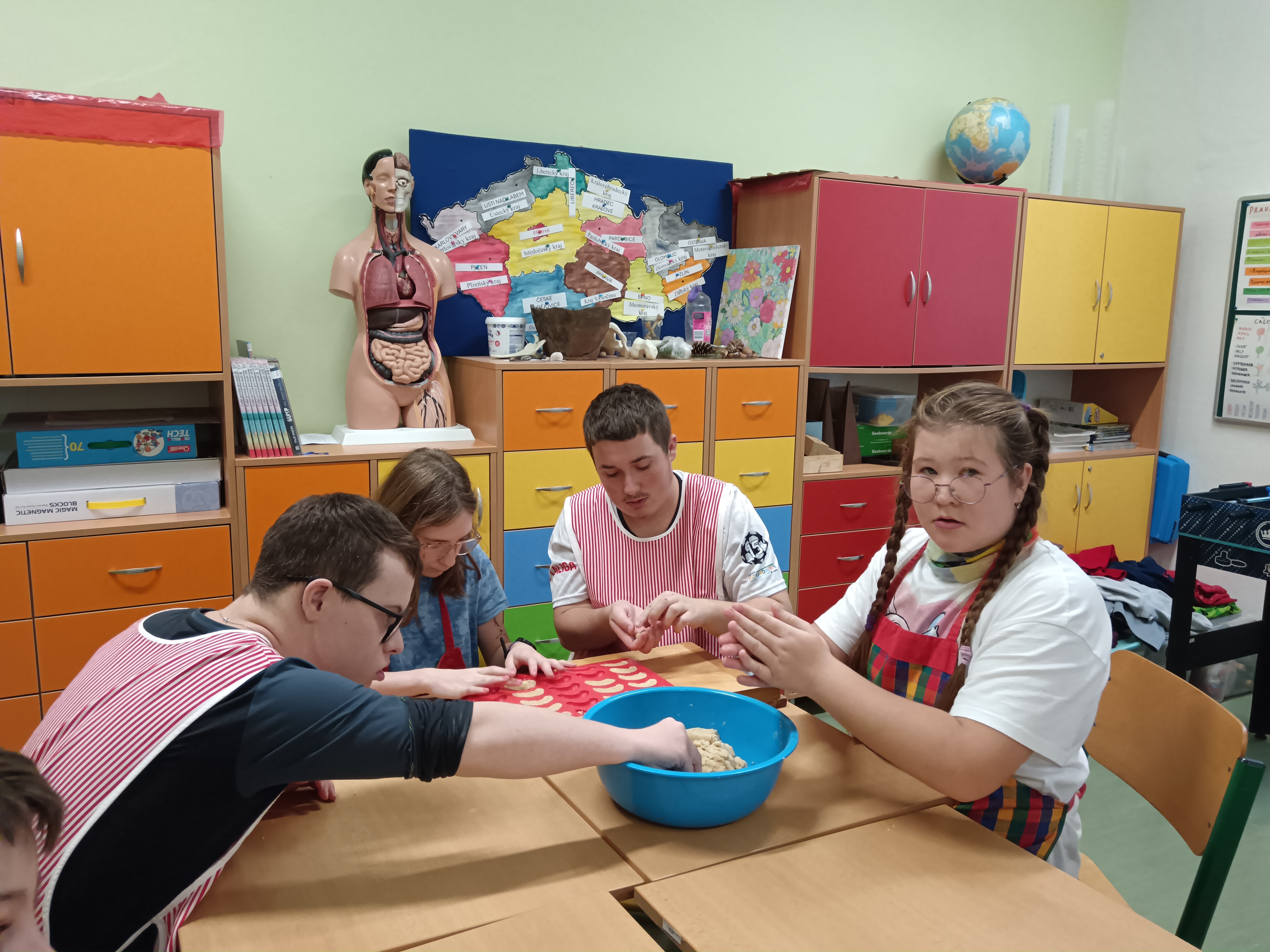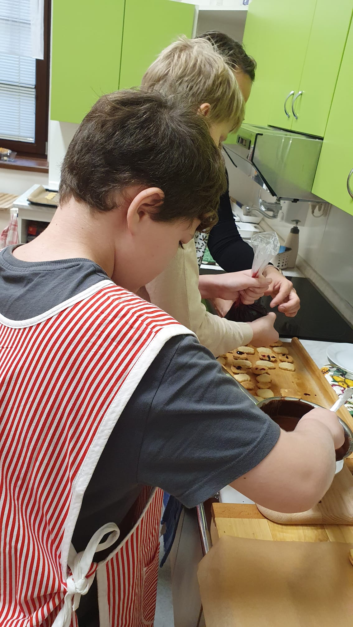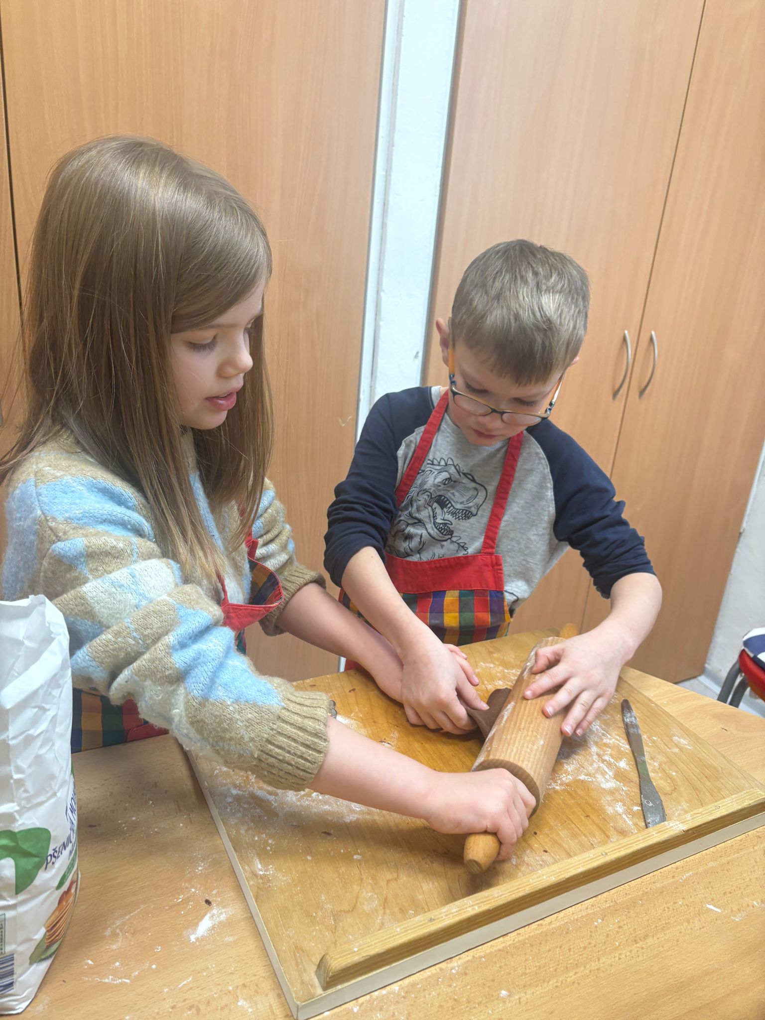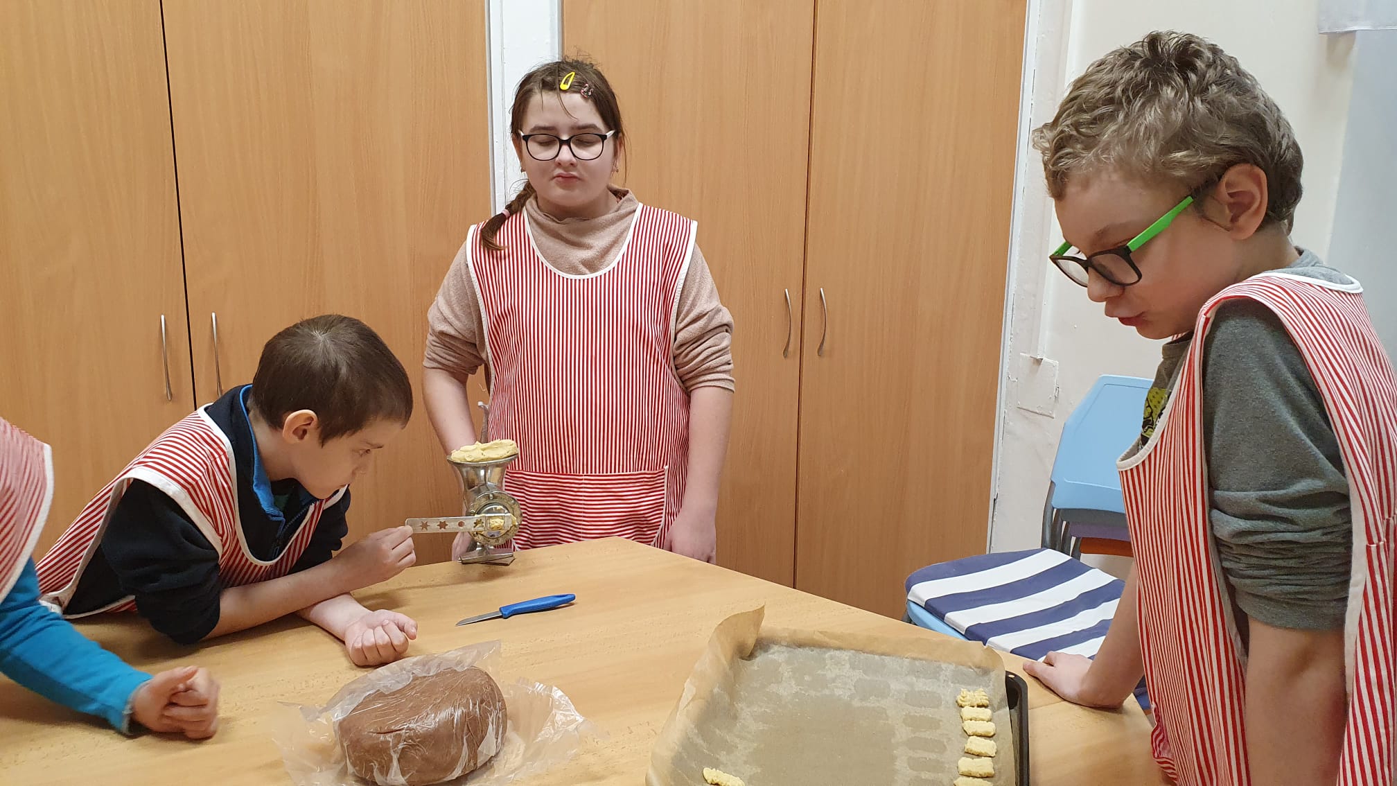 A s ním i přípravy cukroví. Děti při pečení prožívají radost z tvoření a zároveň se učí trpělivosti i šikovnosti. Nejvíce je baví hnětení těsta, vykrajování tvarů a vkládání do formiček. Co ale musely zvládnout nejvíce, byla spolupráce při tvoření strojkového cukroví. Jeden točí, druhý krájí, třetí rovná na plech. A čtvrtý? Ten to všechno hlídá :-).