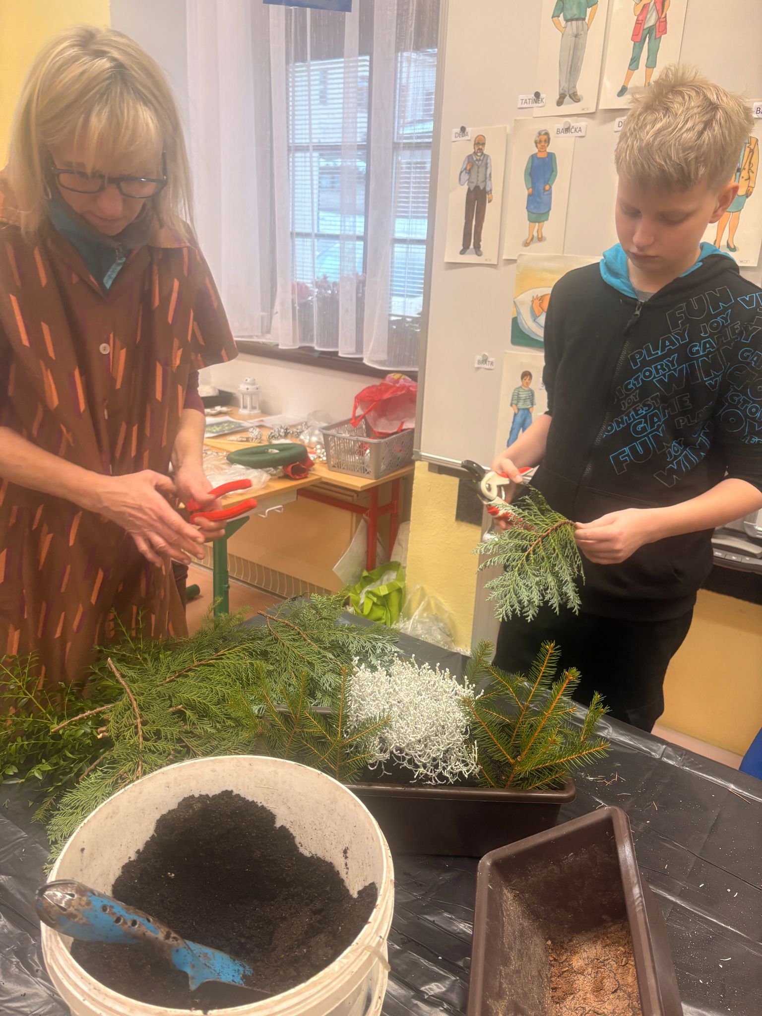 Děti pekly a zdobily perníčky, tvořily malé dárečky pro rodiče (ale pšššt… nic neprozradíme 😉) a společně jsme vánočně vyzdobili celou školu.