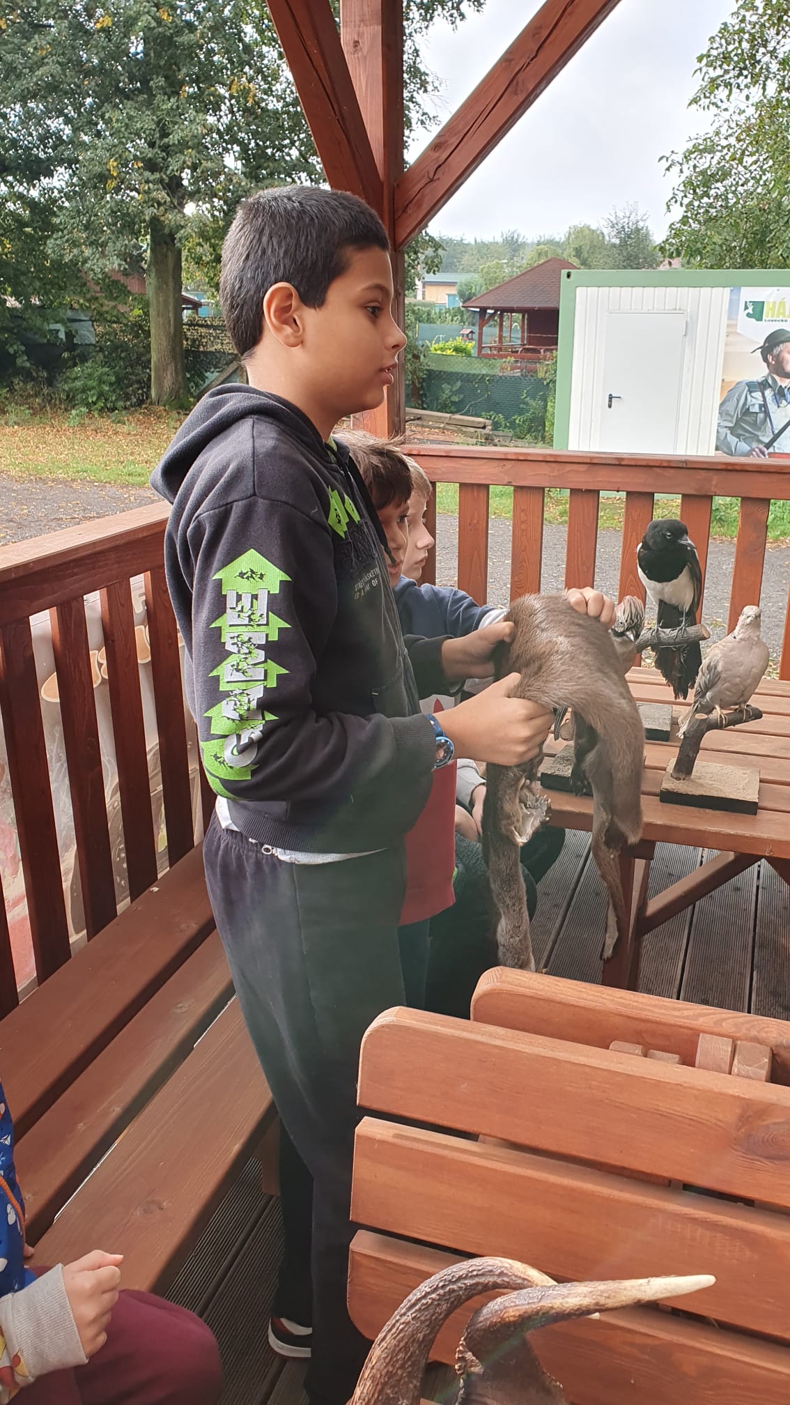 Na začátku školního roku jsme zavítali k místnímu mysliveckému spolku. Dopoledne jsme strávili mezi dravci, s myslivci v lese a i v lese při poznávání stromů a zvěře.